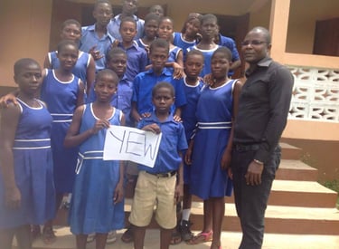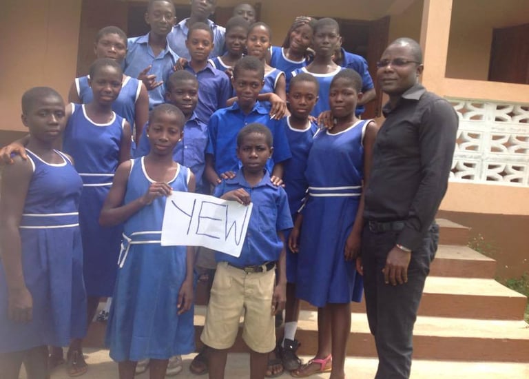 The Spelling "B" Project by YEW Ambassador, Richmond Amada Smith from Ghana. Richmond held the spelling “B” project in the small village of Anum, Asuogyaman District, Ghana