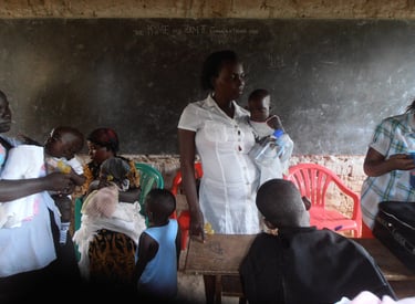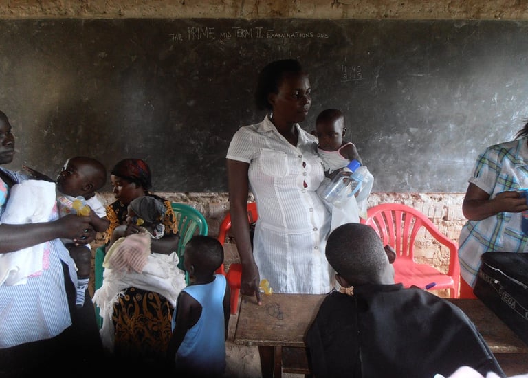 About 30 people both mothers and children arrived at Hope Nursery and Primary School in Buwaali village