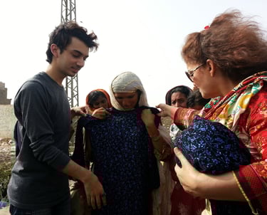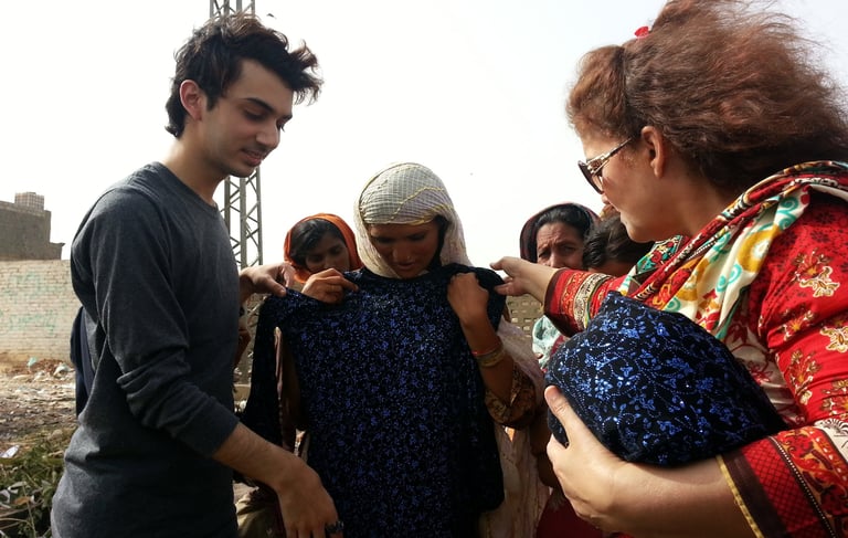 Shahzor and his mother visited women in slum houses to give dresses to women before Eid. The women were very happy to receive such glamorous and glitzy clothes and accessories.