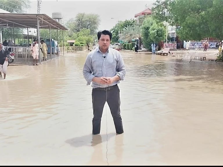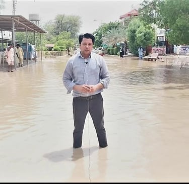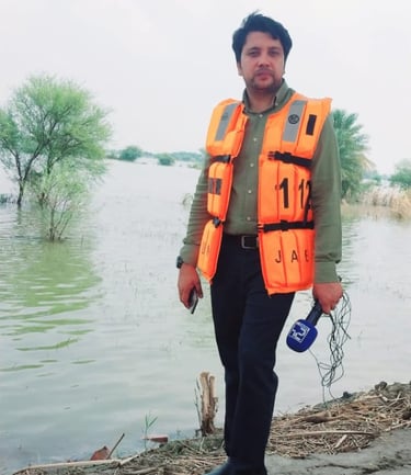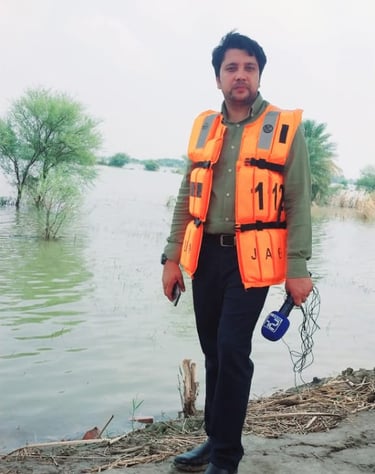Iqbal Sadiq reporting on field during Punjab Floods 2025